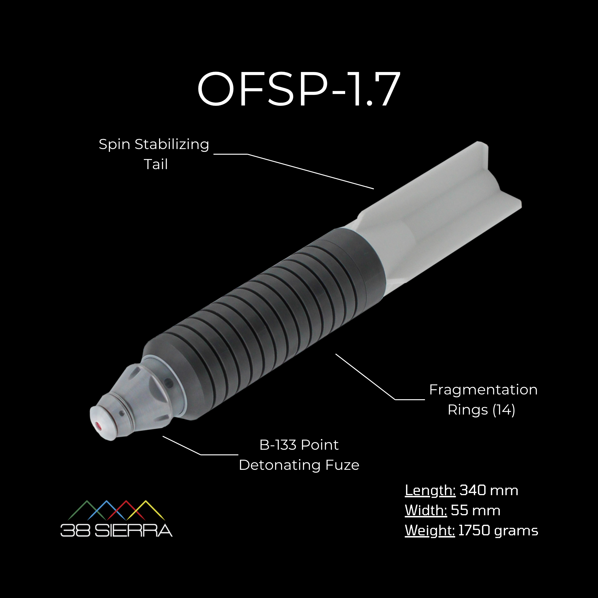 The OFSP-17 inert training aid is a realistic replica of a drone-dropped munition associated with unmanned aircraft systems used in modern conflicts. This training aid is designed to support Counter-UAS training, Bomb Squad training, EOD training, law enforcement training, military training, and critical infrastructure security exercises involving weaponized drone threats and drone payload hazards.